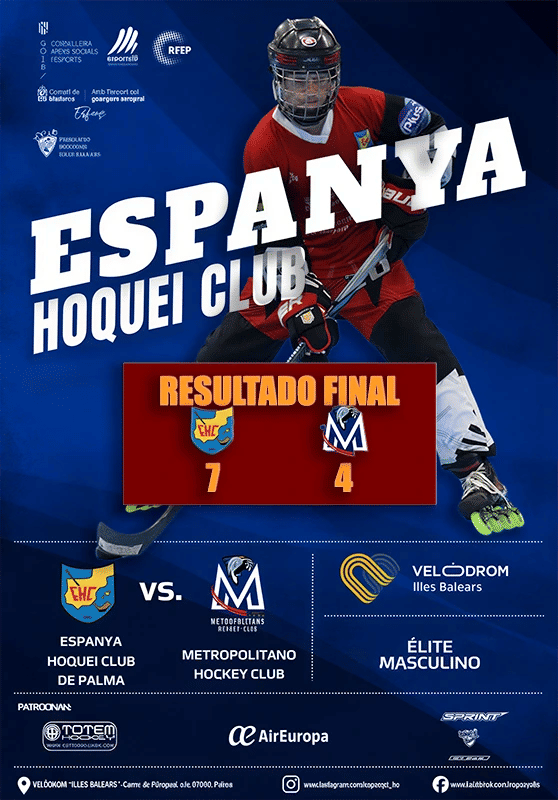 El Espanya Hoquei Club de Palma se ha llevado una importante victoria en casa al imponerse por 7-4 a Metropolitano HC en un emocionante encuentro de la Jornada 13. Un partido en el que se vio al conjunto local dominar la primera mitad con una arrolladora ofensiva, para luego sufrir un intento de remontada por parte de los visitantes en el segundo tiempo que, sin embargo, no fue suficiente para cambiar el destino del marcador.